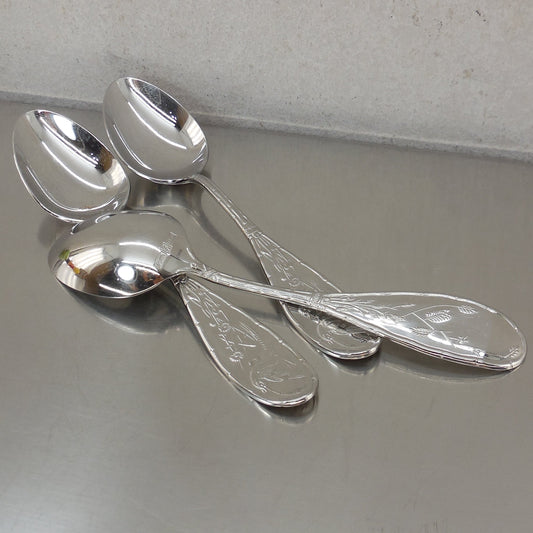 Ricci Argentieri Japanese Bird Stainless Flatware - 3 Place Oval Soup Spoons 7-3/8"