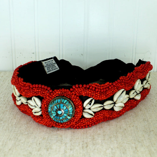 Striking Red Bead Belt Turquoise Medallion Puka Shell Pattern India