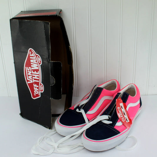 Vans Vintage Old Skool Shoes Off Wall NIB Dress Blues Neon Pink Unisex 7.0 8.5