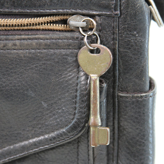 Vtg Fossil 75082 Black Pebbled Leather Shoulder Bag Handbag w/Key