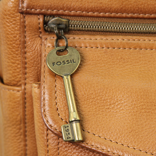 Vintage Fossil 75082 Buckskin Pebbled Leather Shoulder Bag Handbag w/Key