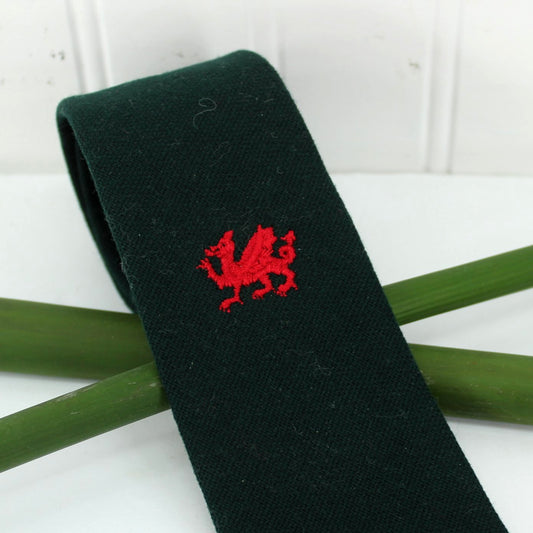 Cambrian UK Skinny Wool Necktie Dark Green Lion Red 55" X 3"