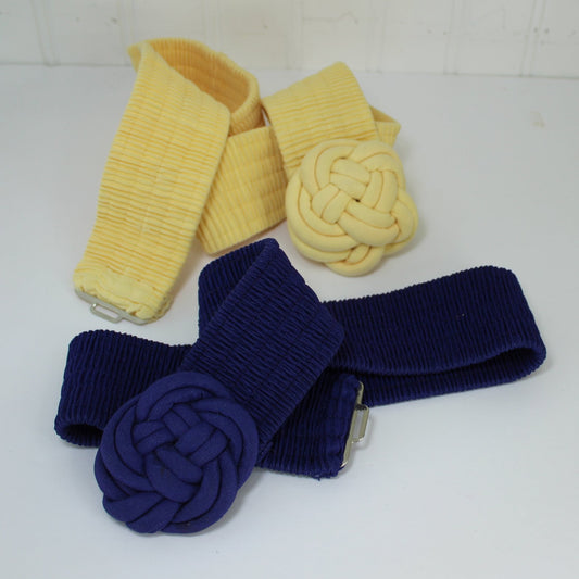 Vintage 2 Stretch Belts Floral Knots Focal Yellow Royal Blue