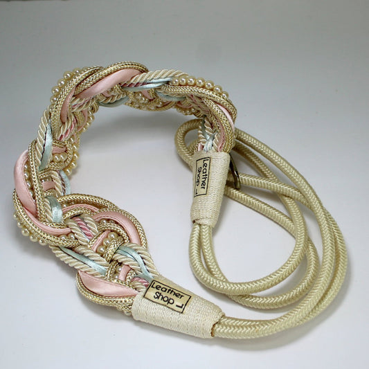 Vintage Pastel Pearl Gold Ivory Cord Belt Leather Shop