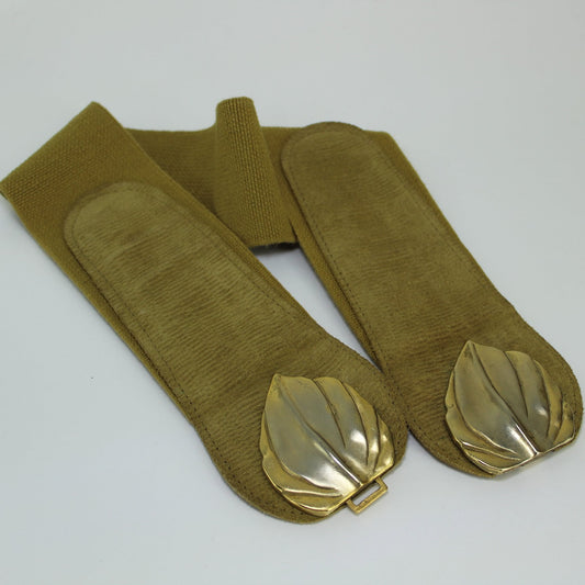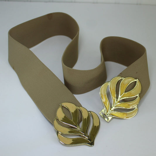 Vintage Tan Khaki Stretch Belt Metal Leaves Buckle