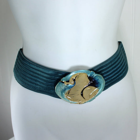 Charmant Heron Bird Vintage Turquoise Teal Stretch Belt Clip Buckle
