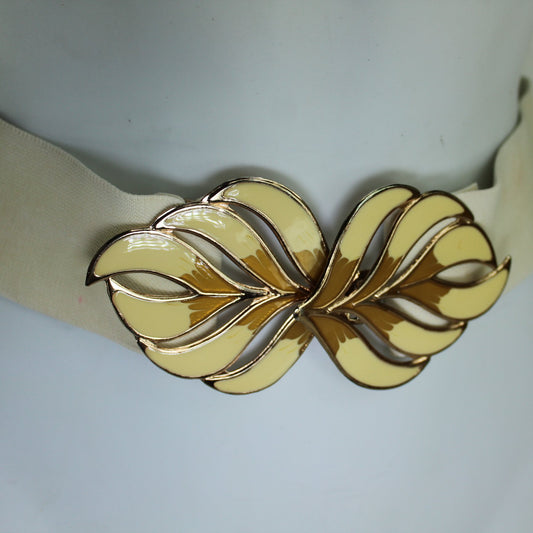 Vintage Ivory Off White Stretch Belt Metal Leaves Buckle Discount