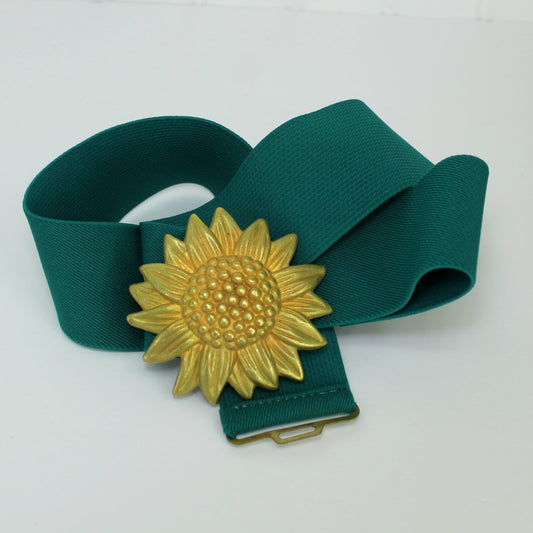 Vintage Turquoise Teal Stretch Belt Metal Sunflower Clip Buckle