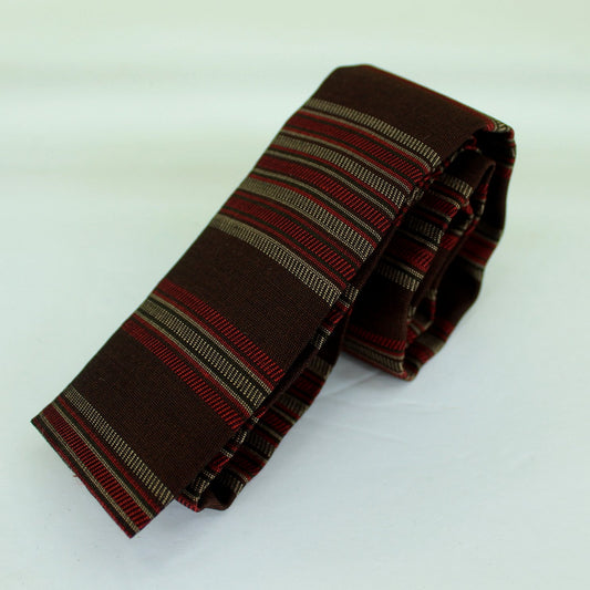 Ernst San Fran Skinny Necktie Square End Brown Deep Red 53" X 2" 1950s 60s
