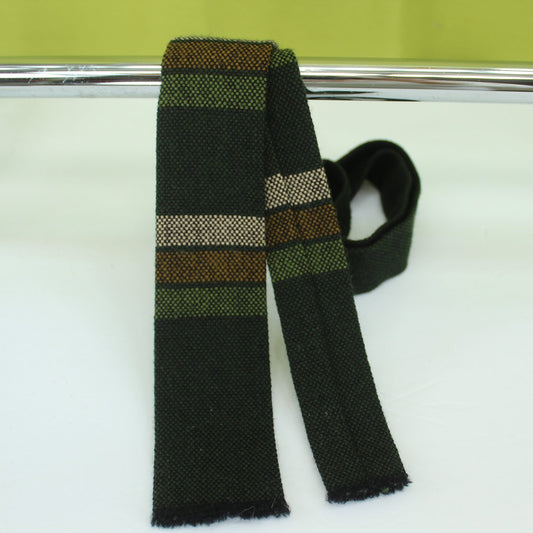 Churchill Weavers Skinny Wool Necktie Hand Woven Square End Greens Tan 52" X 2" MCM