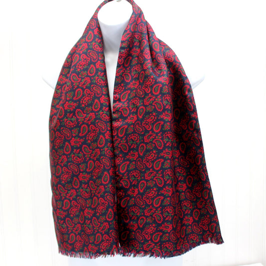 Elegant Paisley Silk Scarf Zephyr Navy Blue Wool Lined 48" X 10 3/4" Vtg USA