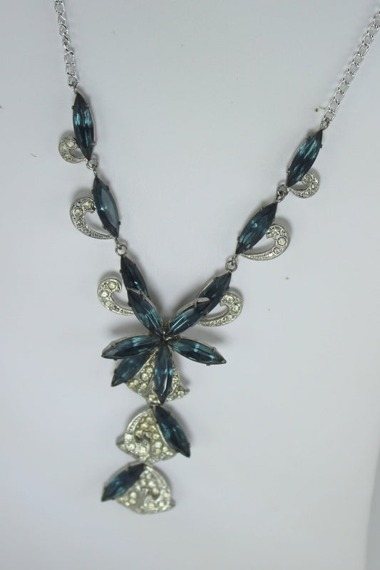 Lavalier Star Necklace - Blue and Clear Glass Dimensional Design - 20"