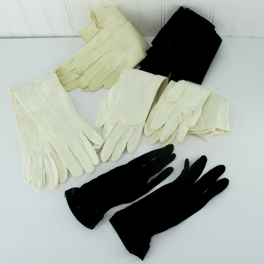 Lot 6 Pairs Vintage Mid Centry Formal Party Gloves Kid Fabric Bead Hong Kong