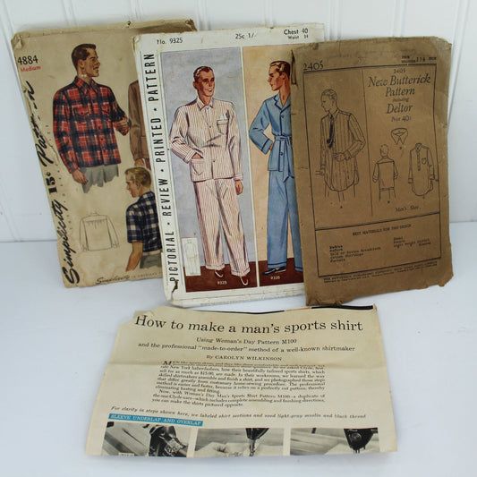 Lot 3 Sewing Patterns Men's Butterick Deltor Early 1900s PJ's Shirt Jacket