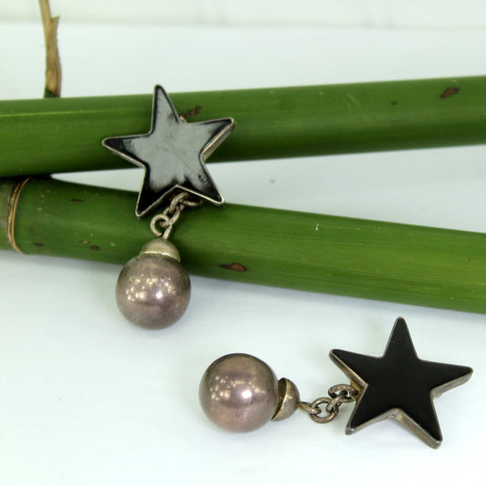 Mexico TR-70 Sterling Earrings Large Black Stone Star Silver Ball Clip 28.2 GrRegular price $ 45.00 USDRegular priceUnit price / per