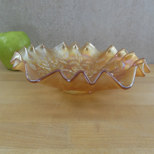 Millersburg Trout & Fly Marigold Carnival Glass Ruffled Bowl 3-1