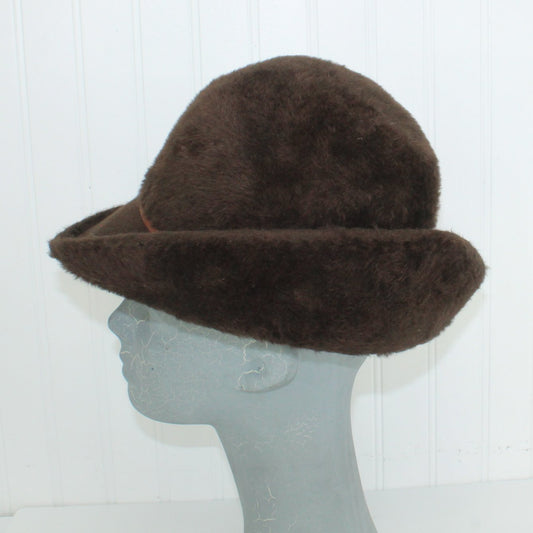 Mr John Classic Vintage Hat Austria Brown Felt Faux Fur Roll Brim