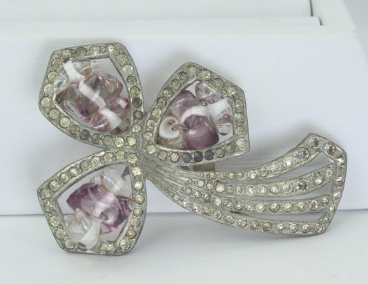 Murano Style Antique Fur Clip - Art Nouveau Beads Amethyst Clear