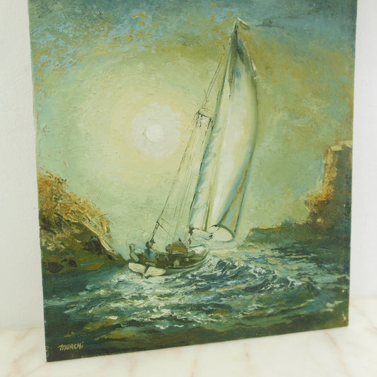 Murch Signed Oil Painting Sailboat Rock Shore Cliff