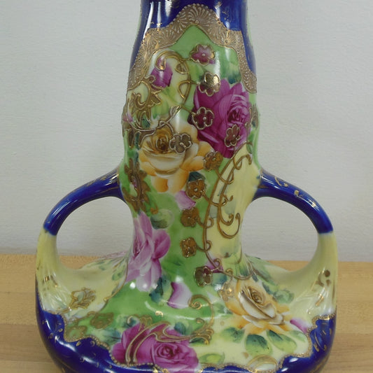 Morimura Gumi Nippon Antique Vase Roses Moriage 1/4" Maple Leaf