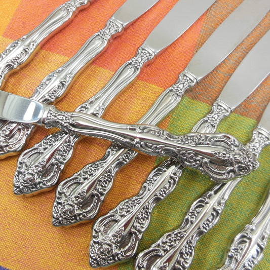 Oneida Community Silver Valentine 8 Set Steak Knives Stainless Silver Plate