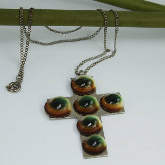 Operculum Large Cross Necklace Sweetheart WW 11 Trench Art Silver Military Metal