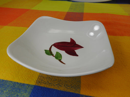 Orchard Ware California Pottery Red Lily Flower - Square Berry Fruit Bowl 4-7/8"