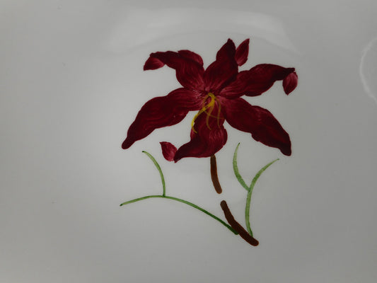 Orchard Ware California Pottery Red Lily Flower - Serving Vegetable Bowl 8"