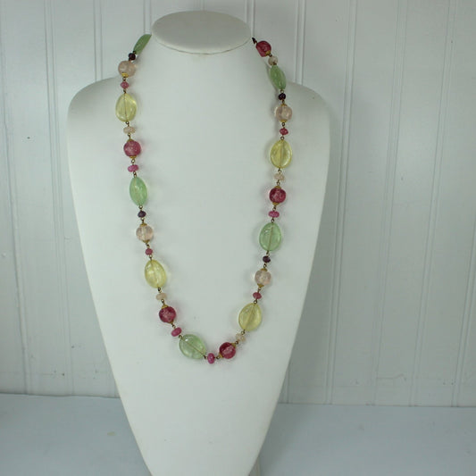 Pastel Glass Bead Necklace Pleasant Colors Green Mauve Pink