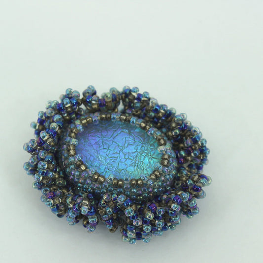 Pat Falk Early Work Glass Pin Iridescent Bead Ruffle Surround Brilliant Blues