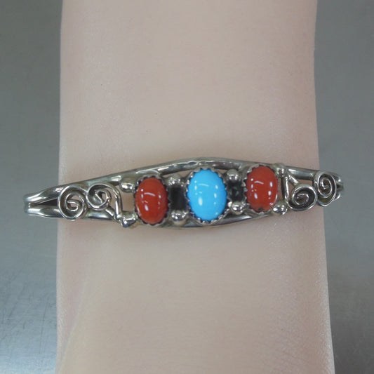 Pauline Nelson Navajo Sterling Silver Turquoise Coral Cabochon Cuff Bracelet