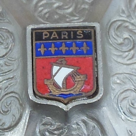 Paris France Enamel City Ship Shield Metal Souvenir Ashtray
