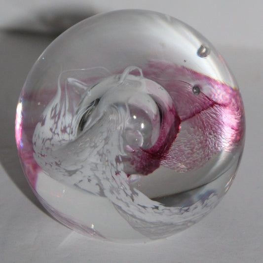 Paperweight Control Bubble Marked CllG Pink Rose White Fantasy