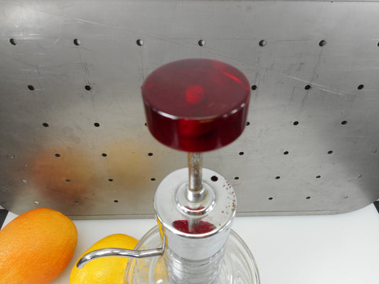 Art Deco Red Bakelite Chrome Glass Bar Liquor Pump Decanter Dispenser