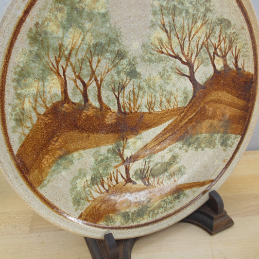 Peter Newland Large Pottery Wall Plate Trees Landscape 13.75"