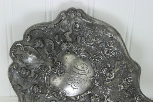 Pewter Hand Mirror Cherubs Angels Old Use DIY Craft Picture Frame