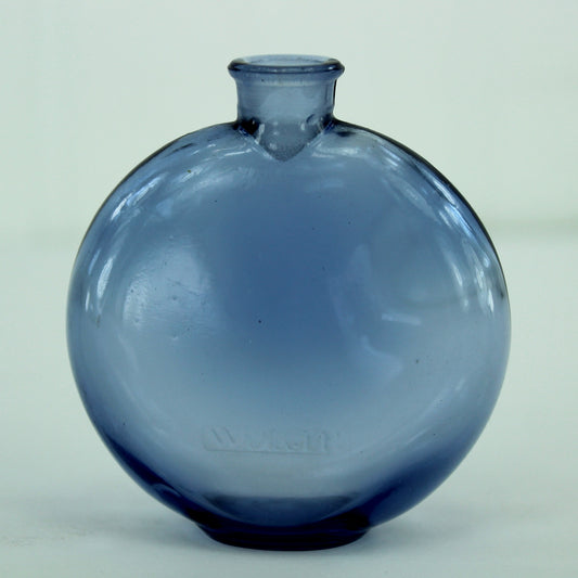 R Lalique Worth Blue Glass Perfume JE Revien Empty Bottle 1 oz French Bottle Mark