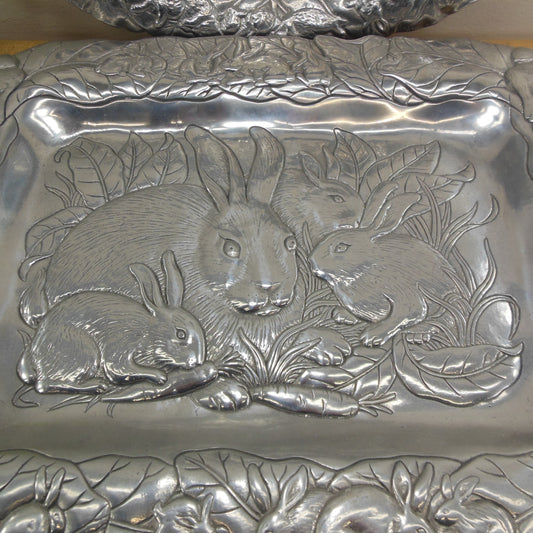 Arthur Court 1990 Pair Aluminum Bunny Rabbit Tray Platter Bowl