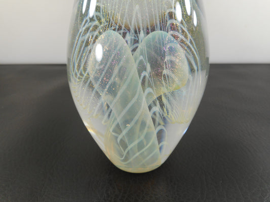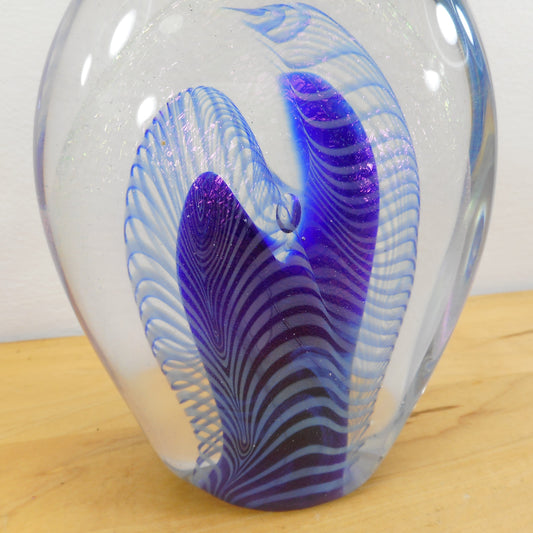 Robert Eickholt Signed 1995 Iridescent Art Glass Egg Pointed Paperweight