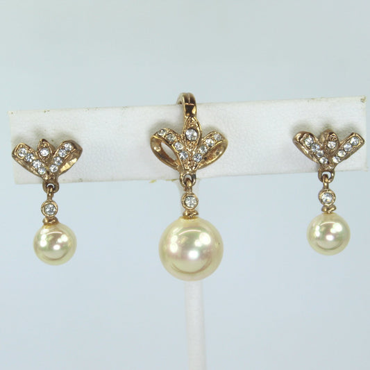 Roman Vintage Set Locking Clasp Pendant Matching Post Earrings Crystals Pearls