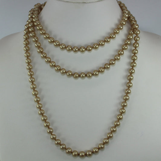 Rope Length 57" Necklace Faux Champagne Pearls Individually Knotted Vintage
