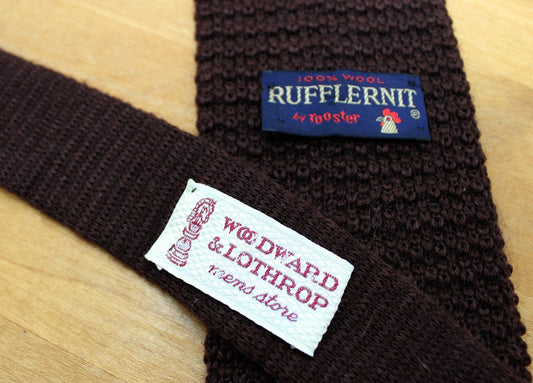 Rooster Rufflernit Necktie - Vintage 1970s Woodward Lothrop - Dark Brown
