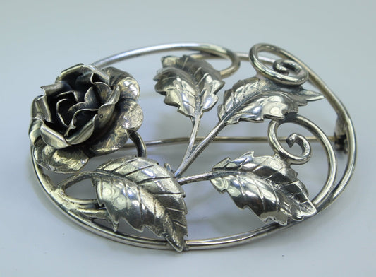 Rose Open Work Sterling Silver Pin - Maker Marked