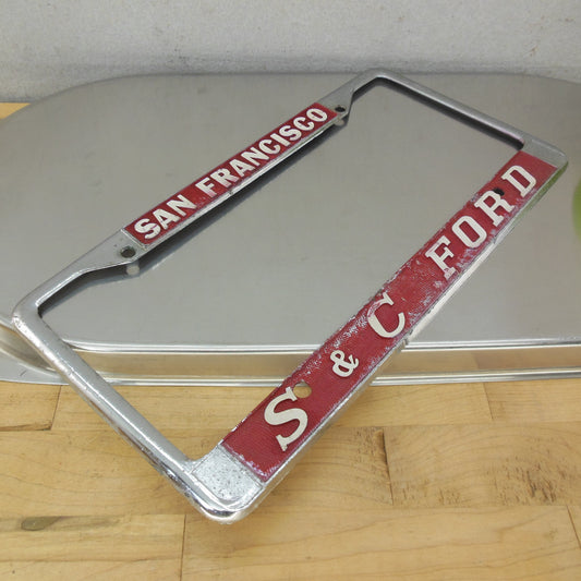 S&C Ford San Francisco CA Metal Red Dealer License Plate Frame