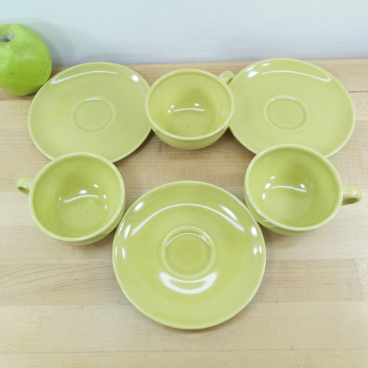 Russel Wright Iroquois Cup & Saucers Avocado Yellow Green - 3 Set