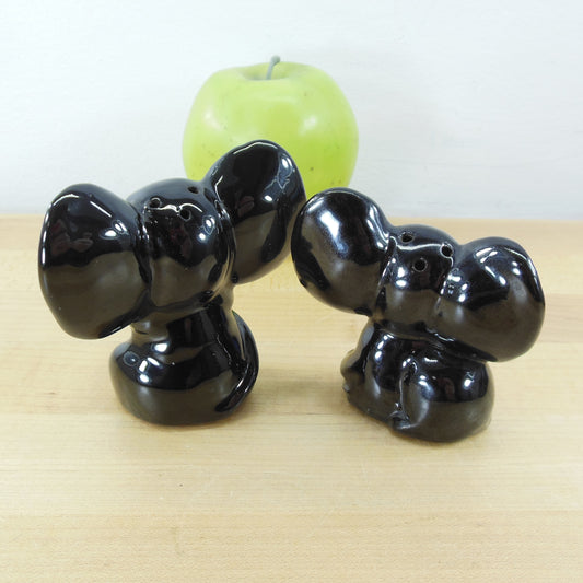 Salt & Pepper Shakers Ceramic Black Big Ear Mice Red Bows Japan