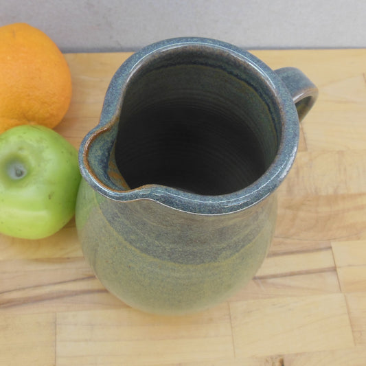 Sarah House NC Pottery Signed Stoneware Pitcher Blue Tan 7.5"