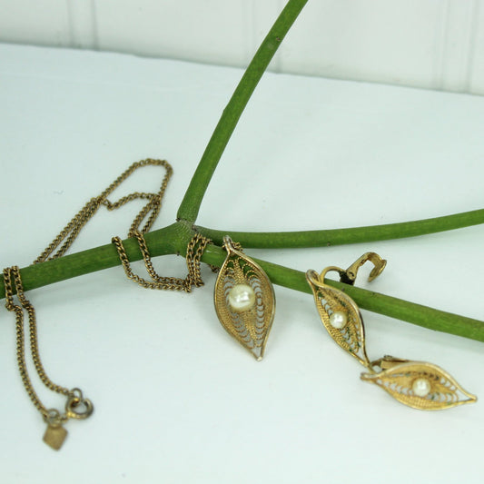 Sarah Coventry Necklace Clip Earrings Set Filigree Pearl