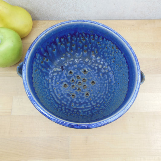Sanibel Pottery 1997 Blue Glaze Berry Bowl Holes Perforated