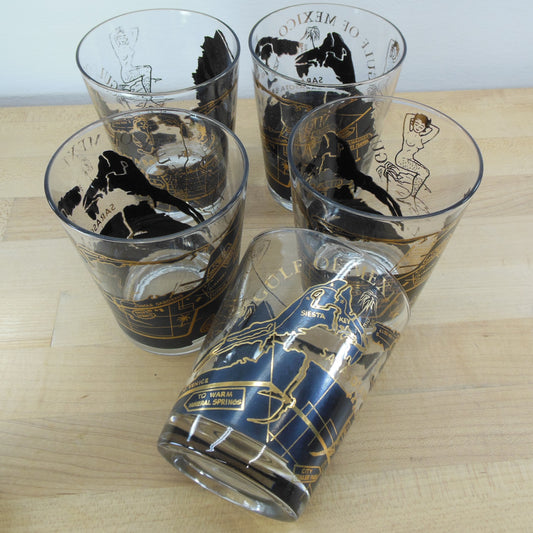 Sarasota FL Souvenir Bar Drink Glasses Black Gold 5 Set